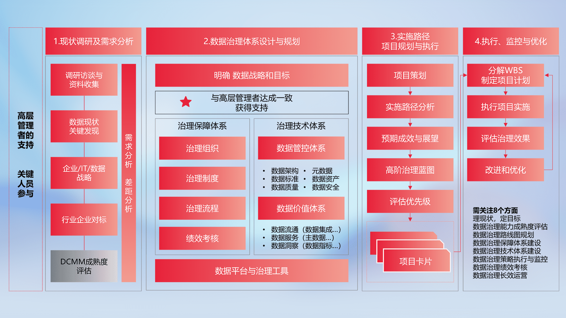 制定并执行统一的数据标准,,规范数据定义和格式,,,,消除冗余和不一致性,,,实现跨部门和跨系统的数据一致性,,为企业提供标准化的数据基础。。